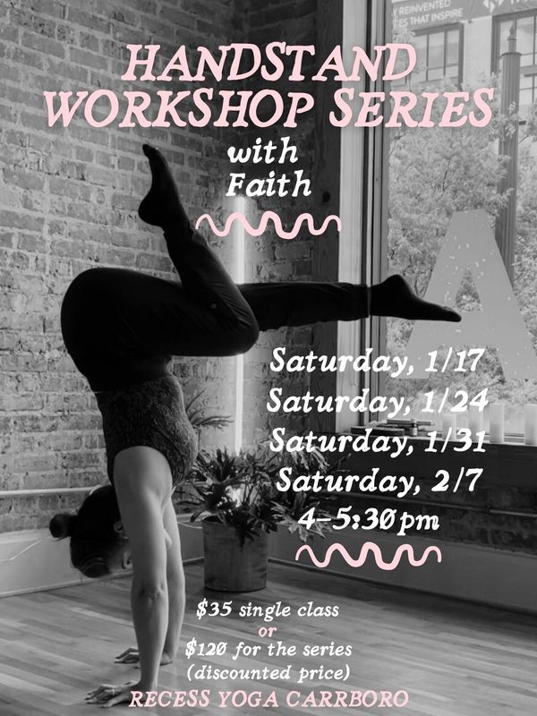 Jumpstart your handstand journey in 2026 or take your current practice to the next level by joining Faith at Recess Yoga for a fun and empowering workshop series.